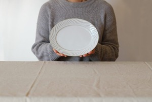 Rondo 27cm オーバル皿【しのぎクリーム】