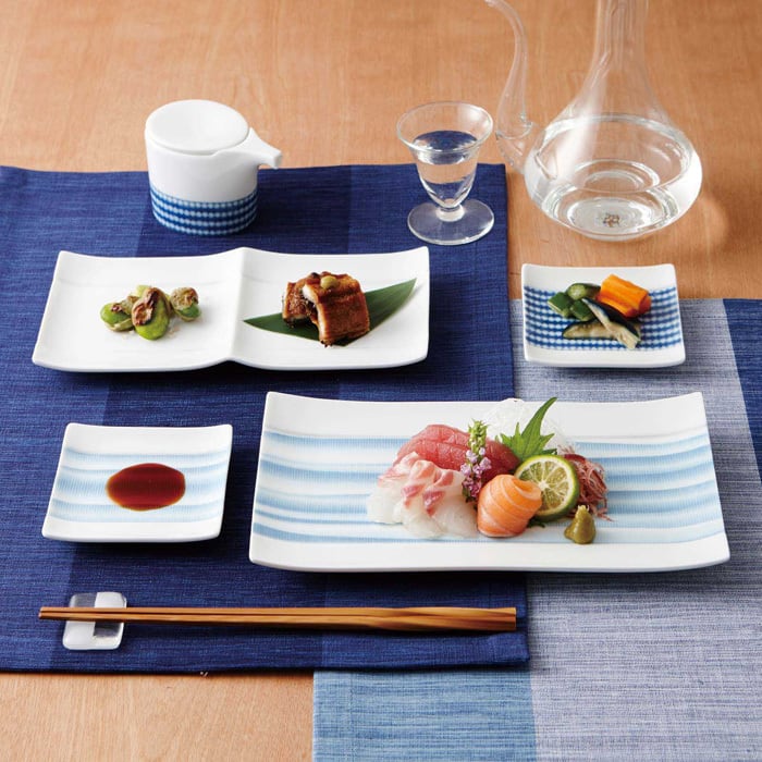 cecima 焼き物皿 刺身皿 24cm 万筋染付文様 おしゃれ食器【日本製】