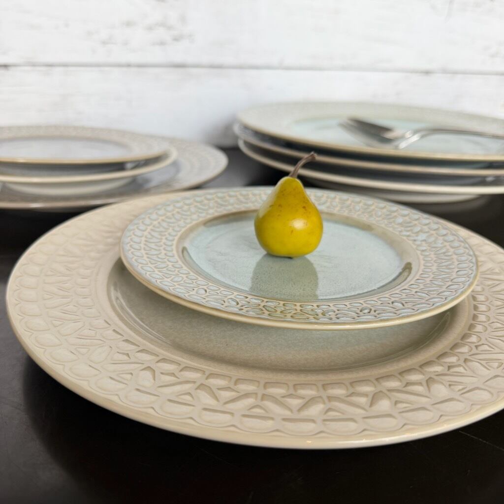 お皿の渕をぐるりとレース模様で包み込んだ大人可愛い食器です♪