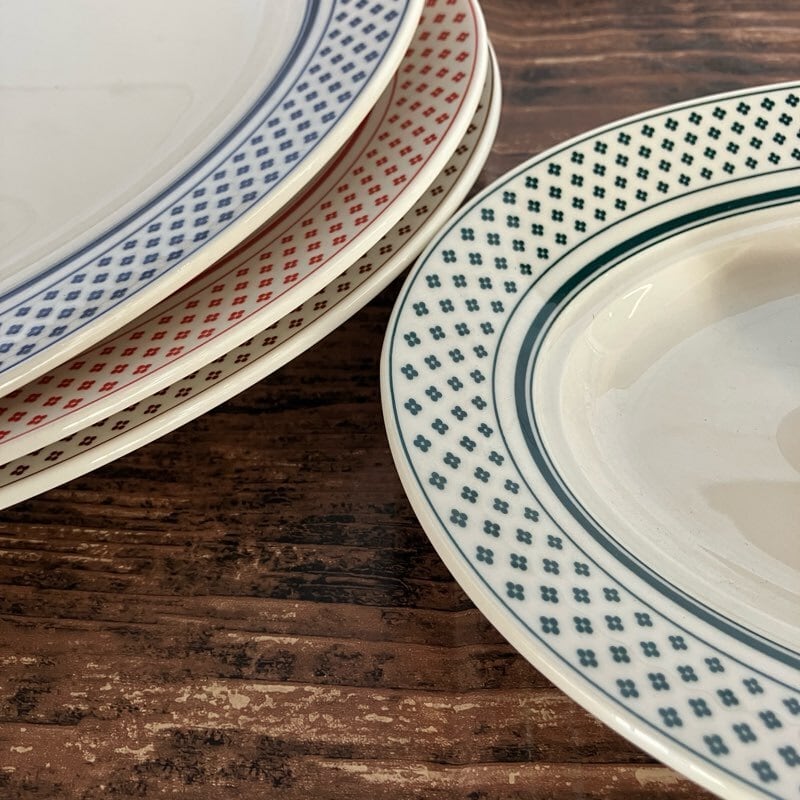 縁のドットのようなリムの模様はお花にも見えとても可愛い食器です♪
