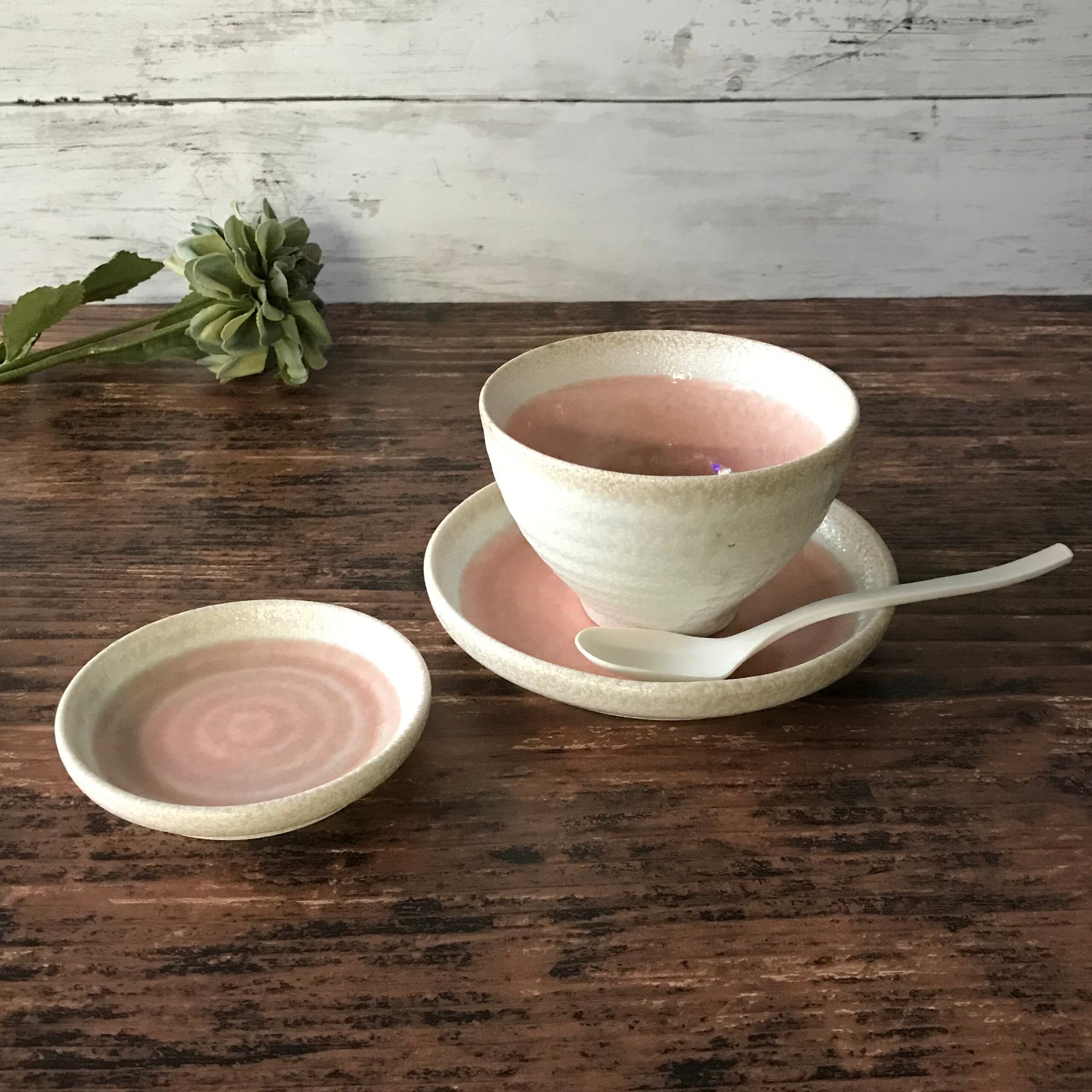 優しいピンクの手造り風和食器『ローゼ』