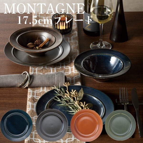 モンターニュ 17.5cmプレート 18cm皿 ケーキ皿 ヴィンテージ食器 おしゃれ食器 可愛い食器【全4色】シェンナ・ビスタ・エルム・インディゴ