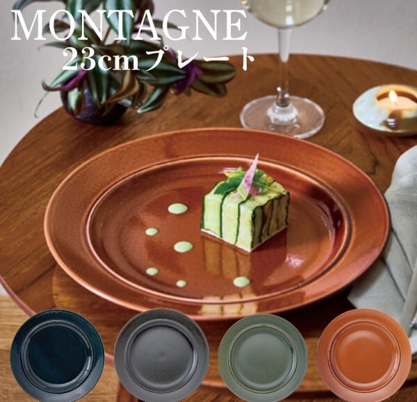モンターニュ 23cmプレート 丸皿【全4色】シェンナ・ビスタ・エルム・インディゴ